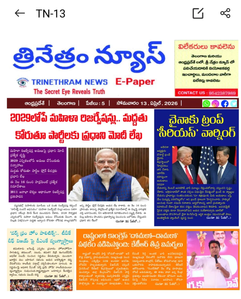 Sri Parabhava Nama Year : త్రినేత్రం న్యూస్ : శ్రీ గురుభ్యోనమః శుక్రవారం,ఏప్రిల్.10,2026శ్రీ పరాభవ నామ సంవత్సరంఉత్తరాయనం – వసంత ఋతువుచైత్ర మాసం – బహుళ