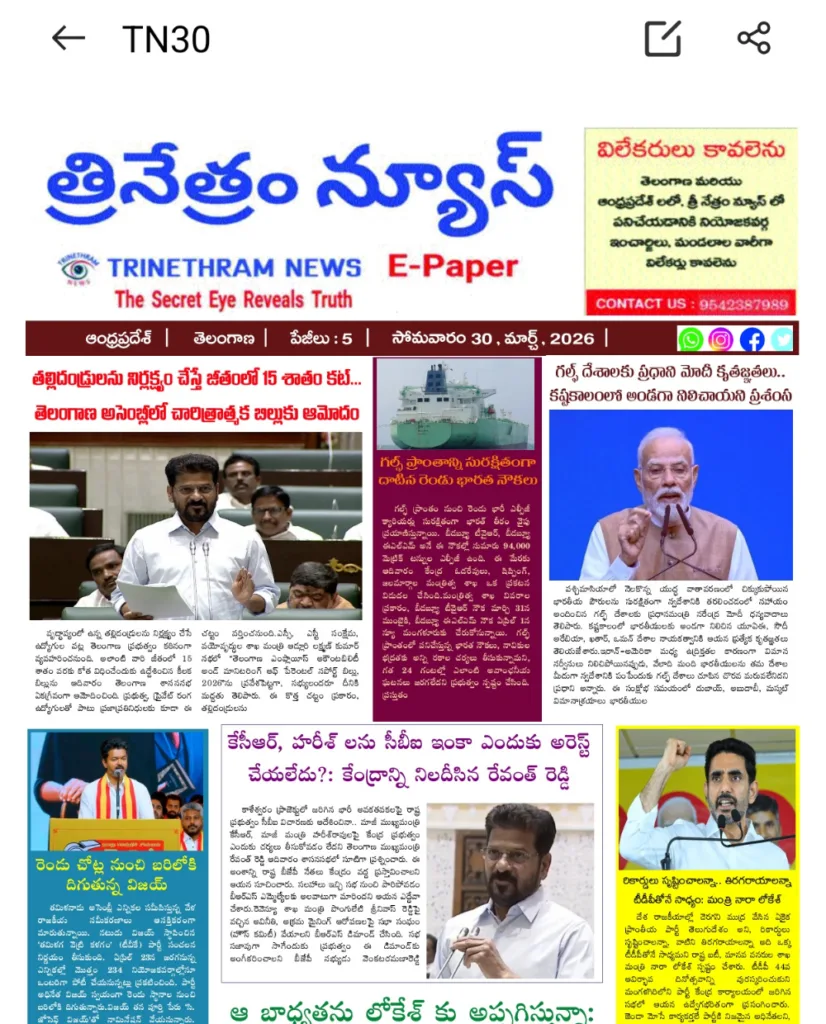 Sri Parabhava Year Nama : త్రినేత్రం న్యూస్ : శ్రీ గురుభ్యోనమః సోమవారం,మార్చి.30,2026శ్రీ పరాభవ నామ సంవత్సరంఉత్తరాయనం – వసంత ఋతువుచైత్ర మాసం – శుక్ల
