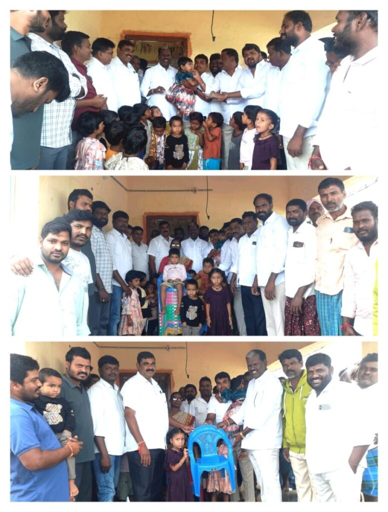 వికారాబాద్ జిల్లా ప్రతినిధి త్రినేత్రం న్యూస్ : చిట్యాల్ అంగన్ వాడి విద్యార్థులకు చిట్యాల గ్రామనికి చెందిన బి ఆర్ ఎస్ నాయకులు గడ్డమిది రాజు కుమార్తె