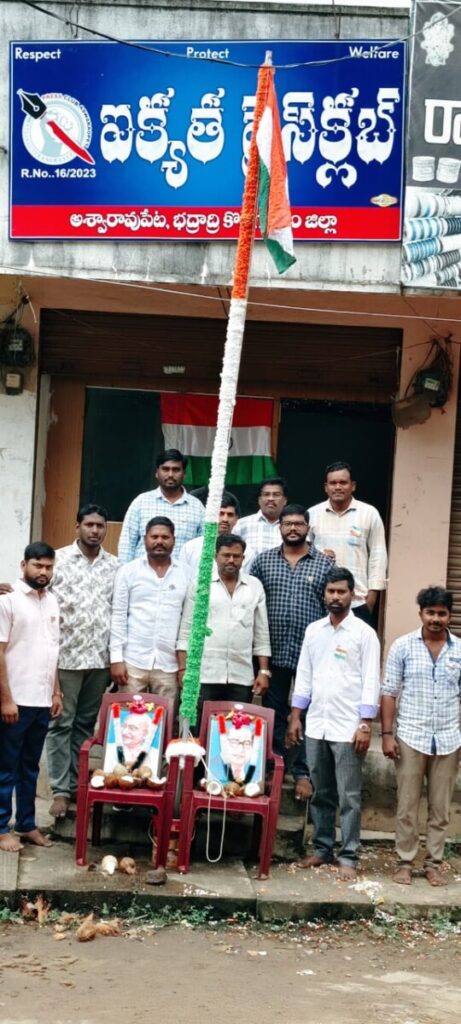 జెండా ఆవిష్కరించిన ఐక్యత ప్రెస్ క్లబ్ అధ్యక్షులు కూన చిన్నారావు త్రినేత్రం న్యూస్ అశ్వారావుపేట. భద్రాద్రి కొత్తగూడెం జిల్లా అశ్వారావుపేటలో ఐక్యత ప్రెస్ క్లబ్ ఆధ్వర్యంలో స్వాతంత్ర్య