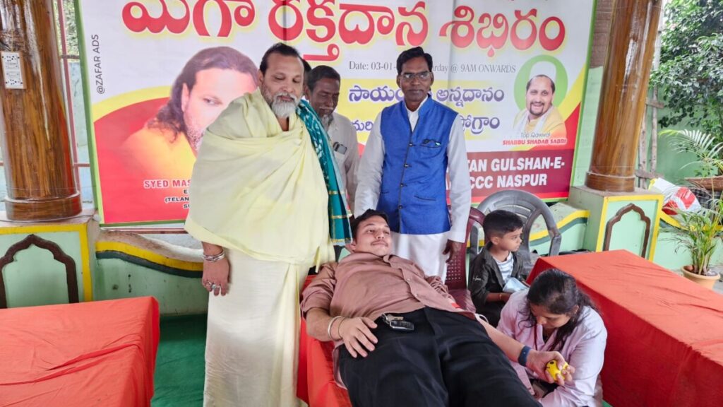 త్రినేత్రం న్యూస్ ప్రతినిధి. హజ్రత్ అలీ జన్మదిన శుభ సందర్బంగా ఖాన్ఖా–ఏ–పంజతన్ గుల్షన్–ఏ–వార్సీ చమన్, సీసీసీ నస్పూర్లో మెగా రక్తదాన శిబిరం ఘనంగా నిర్వహించబడింది.ఈ శిబిరాన్ని ,సూఫీ