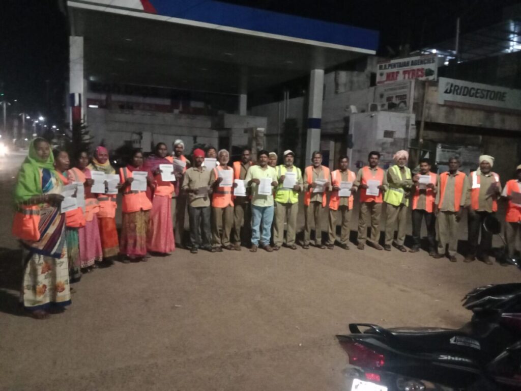 వికారాబాద్ జిల్లా ప్రతినిధి త్రినేత్రం న్యూస్ : వికారాబాద్ మున్సిపల్ లొ జీతాలు,ఏరియర్స్ ఇవ్వాలని, పెరుగుతున్న ధరలకు అనుగుణంగా కనీస వేతనాలు పెంచాలి. వికారాబాద్ జిల్లా కేంద్రంలో