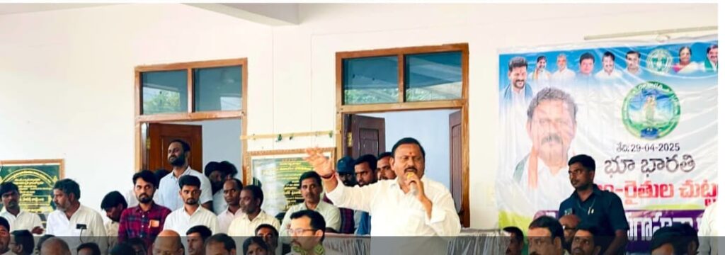 వికారాబాద్ జిల్లా ప్రతినిధి త్రినేత్రం : పరిగి పట్టణంలోని ప్రజా భవన్ ఎమ్మెల్యే క్యాంపు కార్యాలయంలో తెలంగాణ రాష్ట్ర ప్రభుత్వం ప్రతిష్టాత్మకంగా రూపొందించిన భూభారతి చట్టంపై అవగాహన