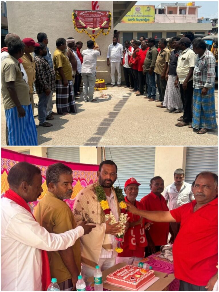 త్రినేత్రం న్యూస్ పెనుమూరు. గంగాధర్ నెల్లూరు నియోజకవర్గoపెనుమూరు మండల కేంద్రంలోని బస్టాండ్ ఆవరణలో జెండా ఆవిష్కరించి శ్రమజీవులకు మేడే శుభాకాంక్షలు తెలిపిన పెనుమూరు మండలం మాజీ సర్పంచ్