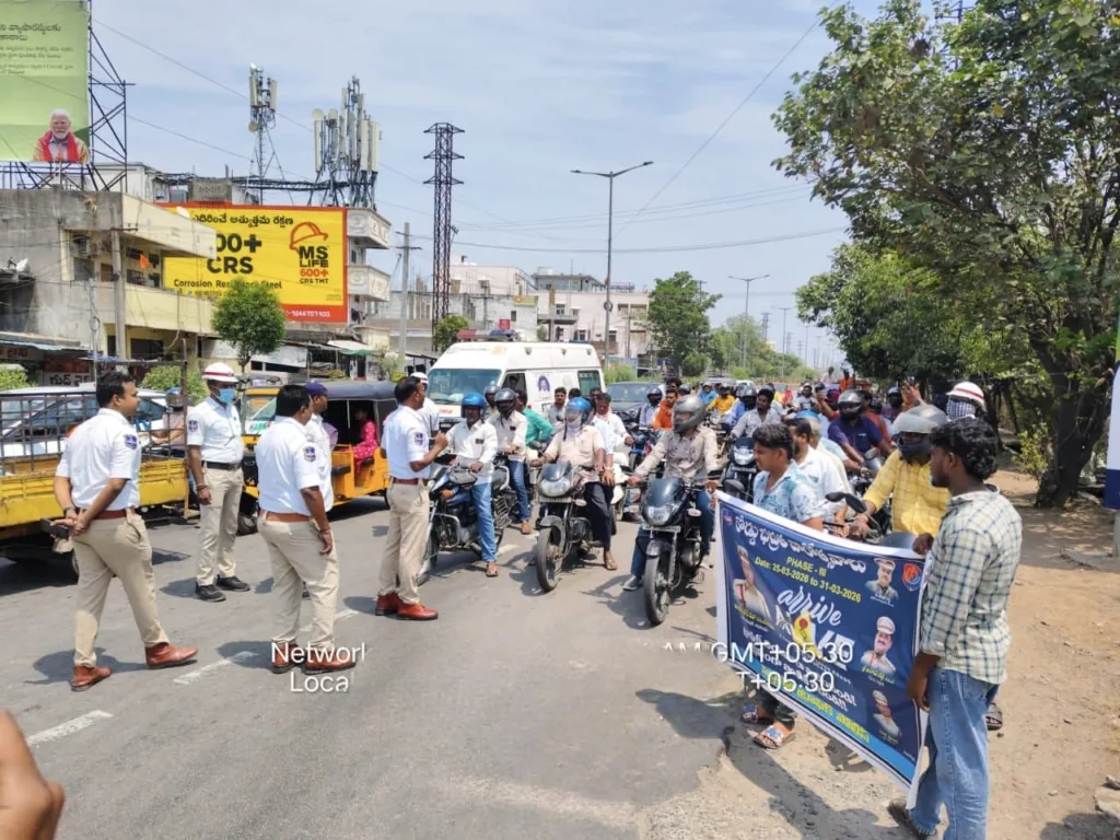 త్రినేత్రం న్యూస్ ప్రతినిధి.. రోడ్డు ప్రమాదాల నియంత్రణ,సురక్షిత ప్రయాణం మరియు వాహనదారుల ప్రాణాల రక్షణను ప్రధాన లక్ష్యంగా తీసుకుని ప్రభుత్వం ప్రతిష్టాత్మకంగా ప్రారంభించిన “అరైవ్-అలైవ్” కార్యక్రమంలో భాగంగా,పోలీస్