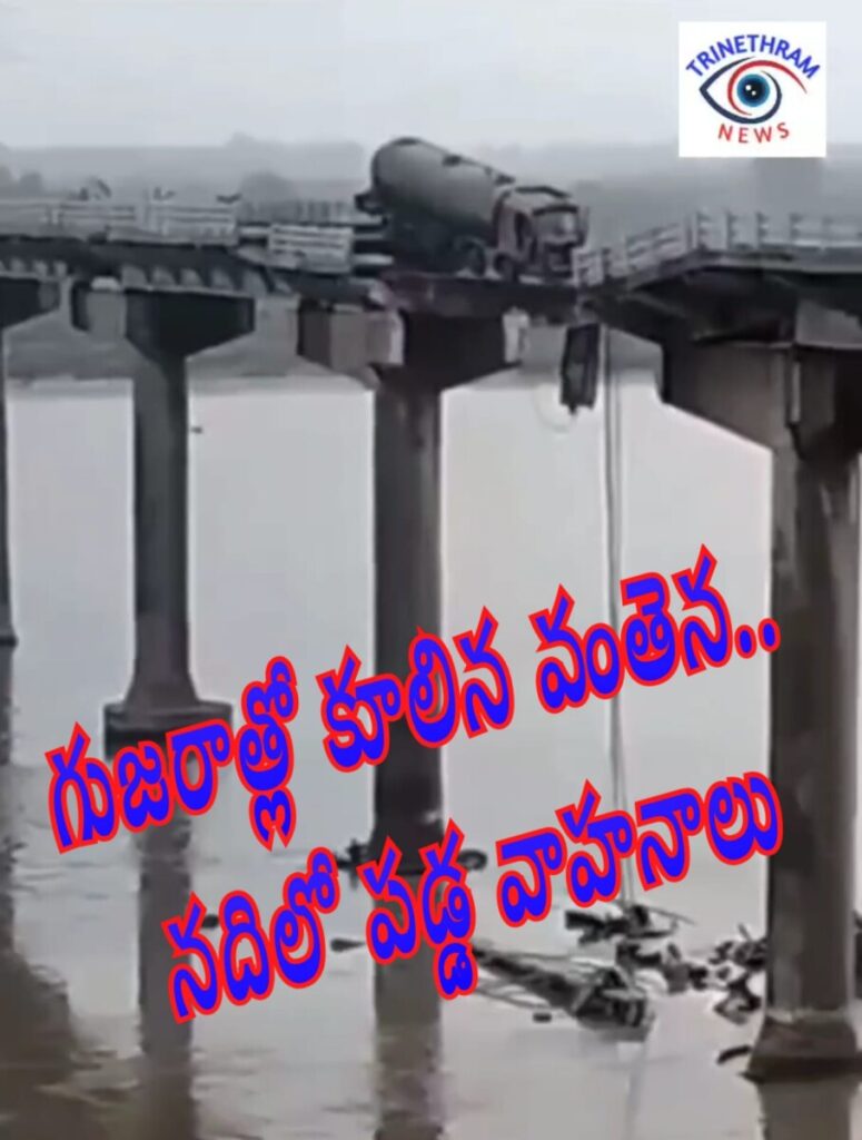 Trinethram News : గుజరాత్ వడోదరాలోని మహిసాగన్ నదిపై ఉన్న గంభీర బ్రిడ్జి ఒక్కసారిగా కూలింది. రెండు లారీలతో పాటు పలు వాహనాలు నదిలో పడిపోయాయి. విషయం