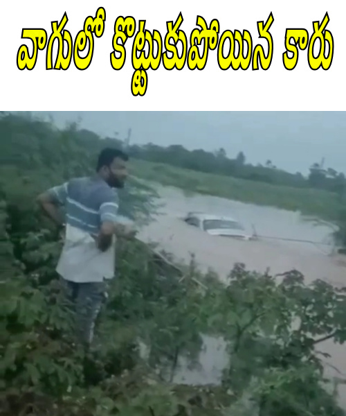 Car Washed Away : యాదాద్రి జిల్లాలో వాగులో కొట్టుకుపోయిన కారు