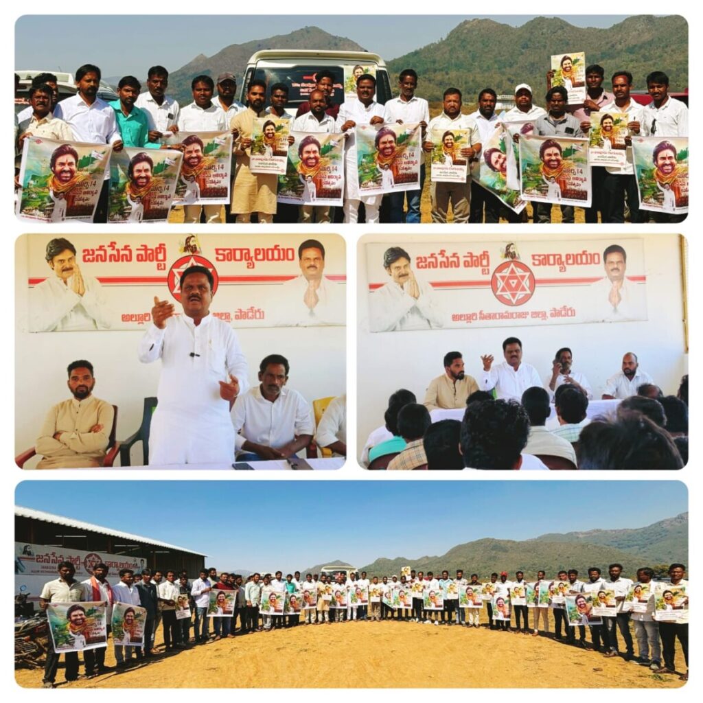 అల్లూరి జిల్లా పాడేరు నియోజకవర్గం త్రినేత్రం న్యూస్ మార్చి 13 : ఈ నెల 14వ తేదీన జరగబోయే పిఠాపురం చిత్రాడ గ్రామంలో జనసేన పార్టీ 12వ