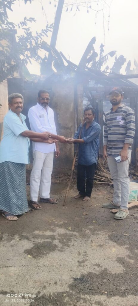త్రినేత్రం న్యూస్.. కడియం : కడియం మండలం, మురమండ గ్రామ పంచాయతీ, పశువుల హాస్పిటల్ సమీపంలో ఇటీవల జరిగిన అగ్ని ప్రమాదంలో సర్వం కోల్పోయిన వికలాంగులు భీమన