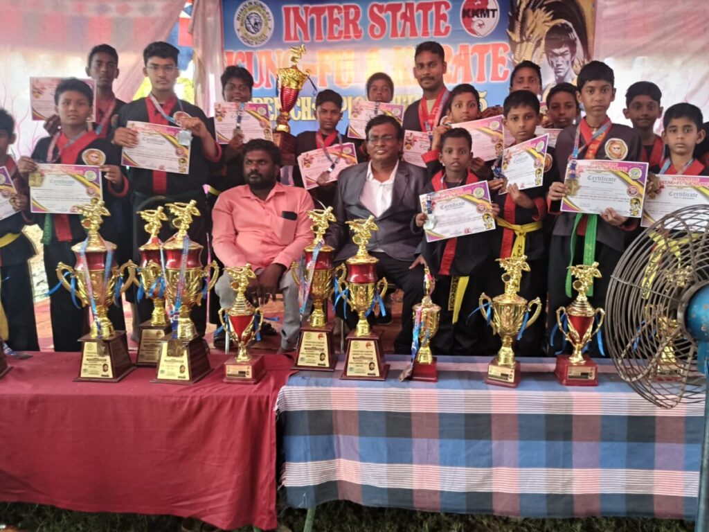 మండపేట: త్రినేత్రం న్యూస్ : న్యూ డ్రాగన్ చైనీస్ కుంగ్ ఫు గ్రాండ్ మాస్టర్ పిట్టా రాజబాబు శిక్షణ పొందిన విద్యార్థులు కుంగ్ ఫు కరాటే పోటీల్లో