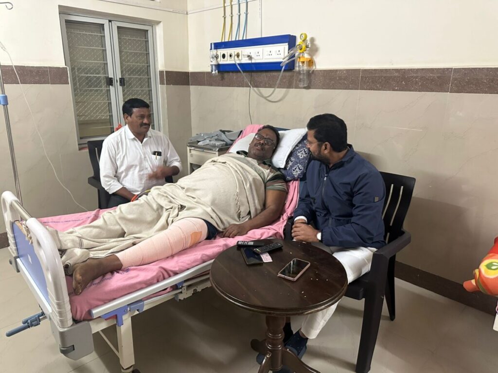 హైదరాబాద్ త్రినేత్రం న్యూస్ ప్రతినిధి. హైదరాబాదు నిమ్స్ ఆసుపత్రిలో మెకాలికి శాస్త్ర చేయుంచుకున్న తెలంగాణ రాష్ట్ర ఎస్సీ ఎస్టీ కమిటి సభ్యులు రామగుండం మాజీ మేయర్ కొంకటి