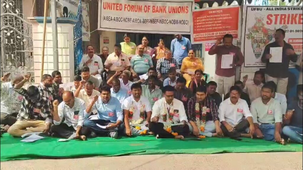 ఎన్టీఆర్ జిల్లా : యునైటెడ్ ఫోరం ఆఫ్ యూనియన్స్ ఆధ్వర్యంలో బ్యాంక్స్ ఉద్యోగులు ఆందోళన చేస్తున్నారు. అన్ని బ్యాంక్స్ ఉద్యోగులు విధులకు స్వస్థి చెప్పి స్టేట్ బ్యాంక్ […]