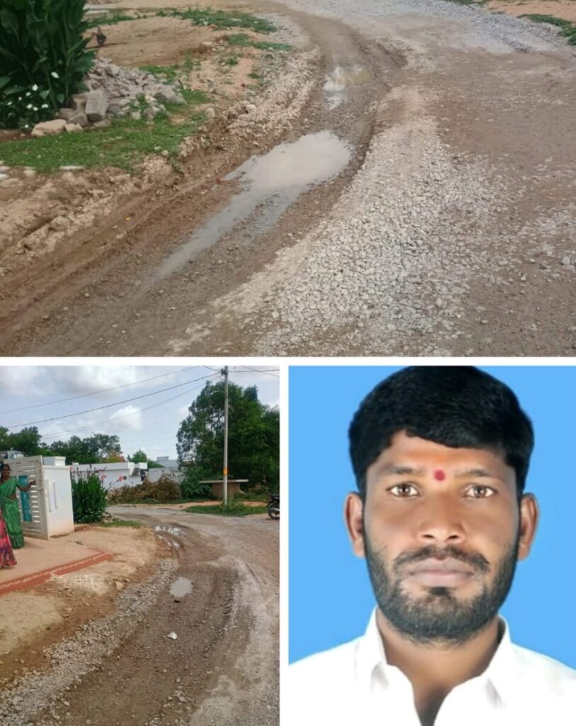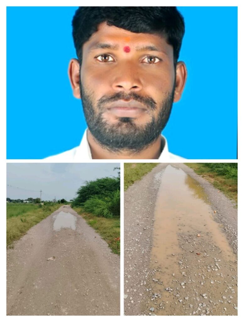 చినుకు పడితే చిత్తడే , గుంతల మయంగా రోడ్డు. పాదాచారులు వాహనదారులు, రైతులకు తీవ్ర ఇబ్బంది. బి ఆర్ ఎస్ పార్టీ గ్రామ శాఖ అధ్యక్షులు ;