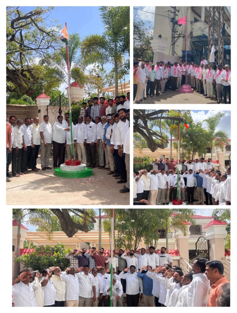 వికారాబాద్ జిల్లా ప్రతినిధి త్రినేత్రం న్యూస్ పరిగి పట్టణంలోని మాజీ ఎమ్మెల్యే కొప్పుల మహేష్ రెడ్డి ఆధ్వర్యంలో, వారి నివాసంలో జాతీయ జెండాను, పార్టీ జెండాను,ఆవిష్కరించి తెలంగాణ