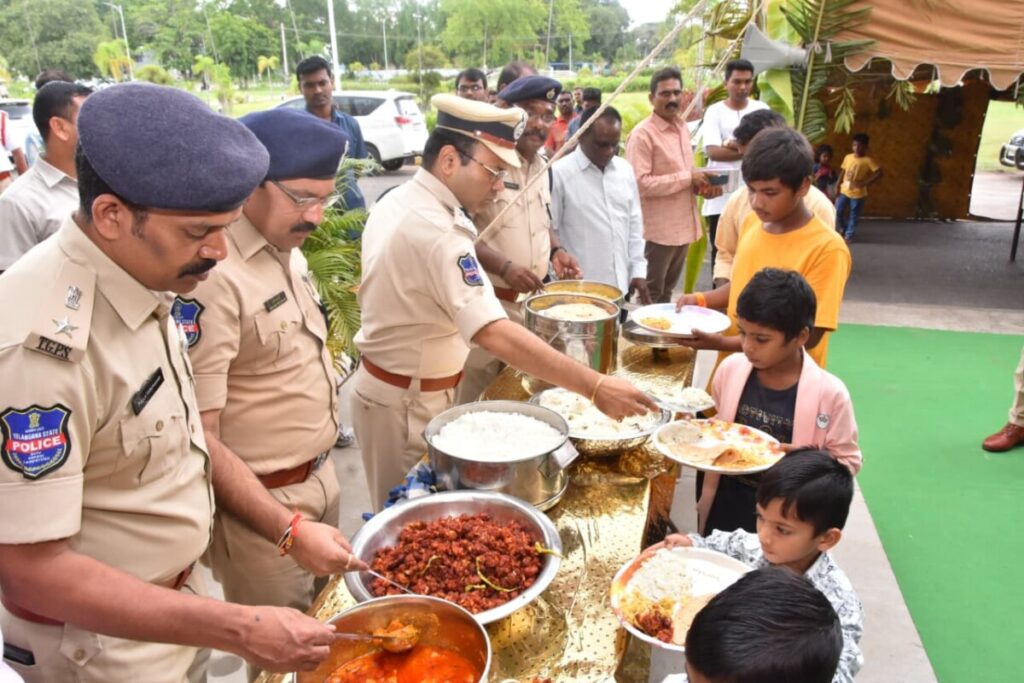 చిన్నపిల్లలకు స్వయంగా అన్నం వడ్డీంచిన సీపీ రామగుండం త్రినేత్రం న్యూస్ ప్రతినిధి. రామగుండం పోలీస్ కమిషనరేట్ హెడ్ క్వార్టర్స్ లో ఏర్పాటు చేసిన వినాయక విగ్రహం వద్ద