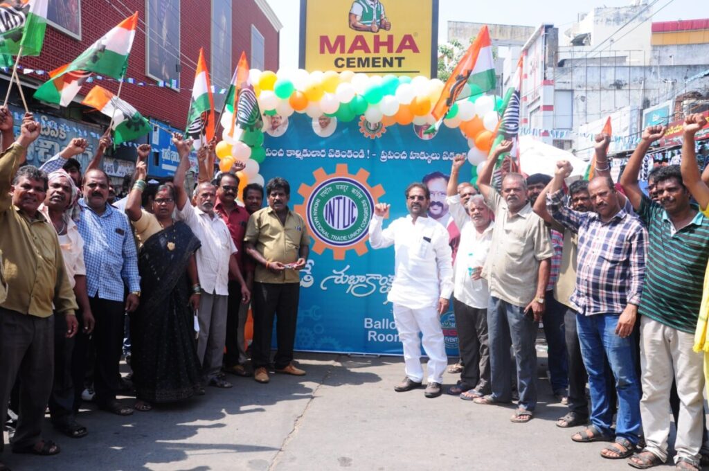 కార్మికుల ప్రయోజనాలు కాపాడే టీఎన్టీయూసి పేపరుమిల్లులో టీఎన్టీయూసి జెండా ఎగరేస్తాం రాజమండ్రి సిటీ ఎమ్మెల్యే ఆదిరెడ్డి శ్రీనివాస్ టీఎన్టీయూసి ఆధ్వర్యంలో ఘనంగా మేడే వేడుకలు కార్మిక నాయకులకు,