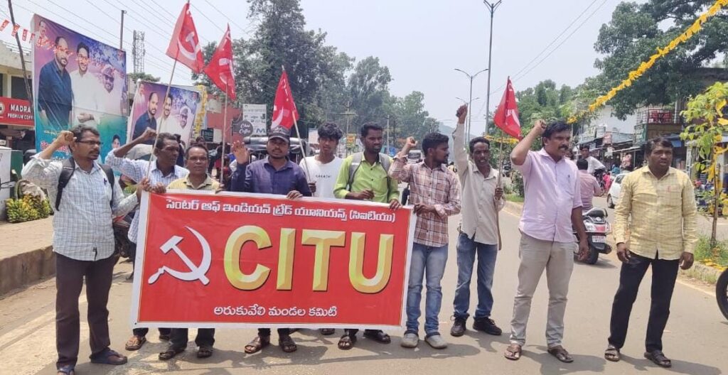 అల్లూరిజిల్లా(అరకులోయ) త్రినేత్రం న్యూస్,జూన్ 10: విశాఖ స్టీల్ ప్లాంట్లో అక్రమంగా తొలగించబడిన ఐదువేల మంది కాంట్రాక్ట్ కార్మికులను తక్షణం విధుల్లోకి తీసుకోవాలని డిమాండ్ చేస్తూ, సిఐటియు రాష్ట్ర