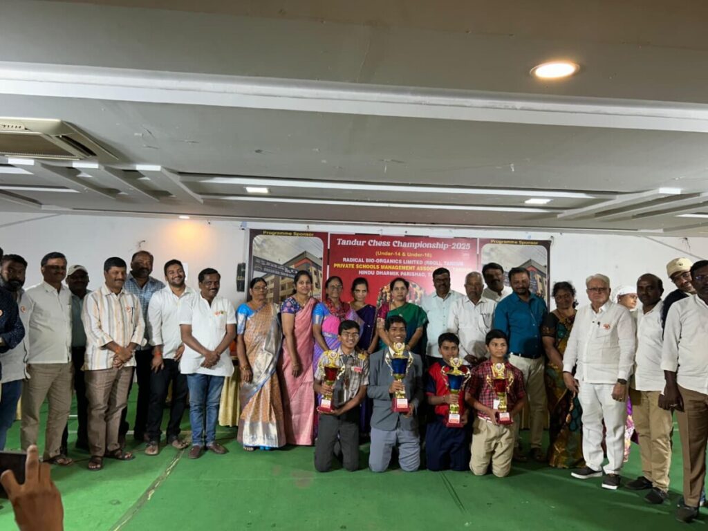 తాండూర్ నియోజకవర్గ ప్రతినిధి త్రినేత్రం న్యూస్ – చెస్ విజేతలకు బుయ్యని సరళ శ్రీనివాస్ రెడ్డి చేతుల మీదుగా ప్రశంస పత్రం మరియు బహుమతి తాండూర్లో నిర్వహించిన