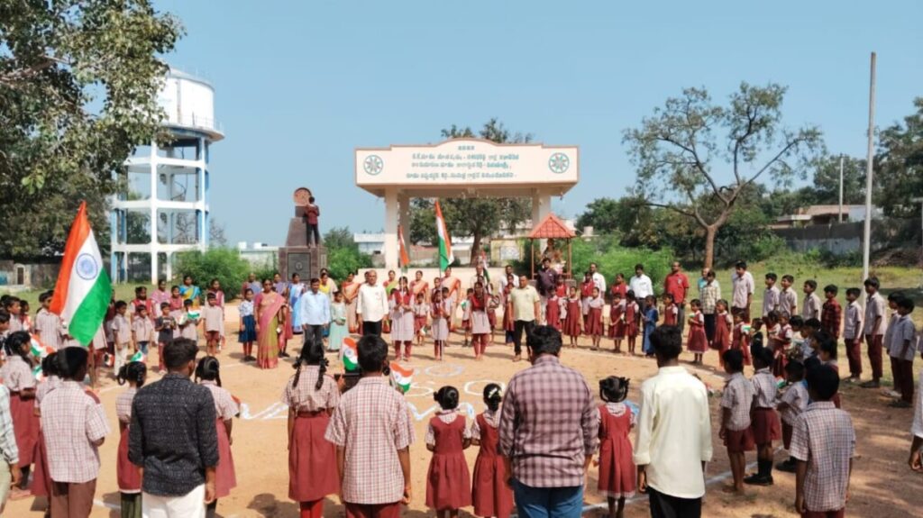 డిండి (గుండ్లపల్లి)నవంబర్07. త్రినేత్రం న్యూస్. భారతదేశభక్తిగీతం ఉద్యమగీతమైన “వందేమాతరం” 150 సంవత్సరాలు పూర్తి చేసుకున్న సందర్భంగా దేశవ్యాప్తంగా నిర్వహిస్తున్న ఉత్సవాలలో భాగంగా డిండి మండల కేంద్రంలోని మండల